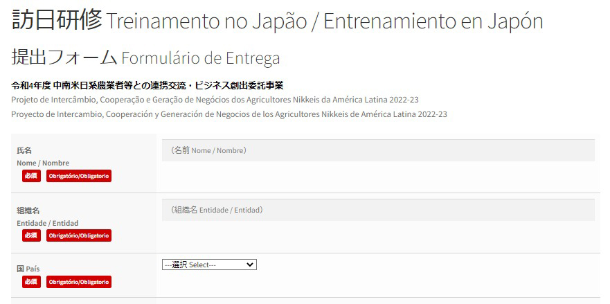 | Conteúdo | Treinamento voltado para líderes da nova geração com interesse no ramo agrícola e alimentícia, principalmente com ânimo para iniciar novos negócios. Realizaremos cursos para conhecer os mais novos materiais e as mais avançadas tecnologias agrícolas do Japão, aprender as técnicas de melhoramento do solo e aprofundar os laços com pessoas do ramo agrícola do Japão |