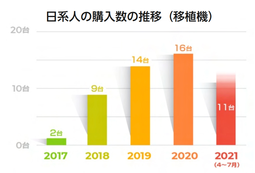 その後も⽇系農業者が継続して購⼊(合計52台、約4700万円)