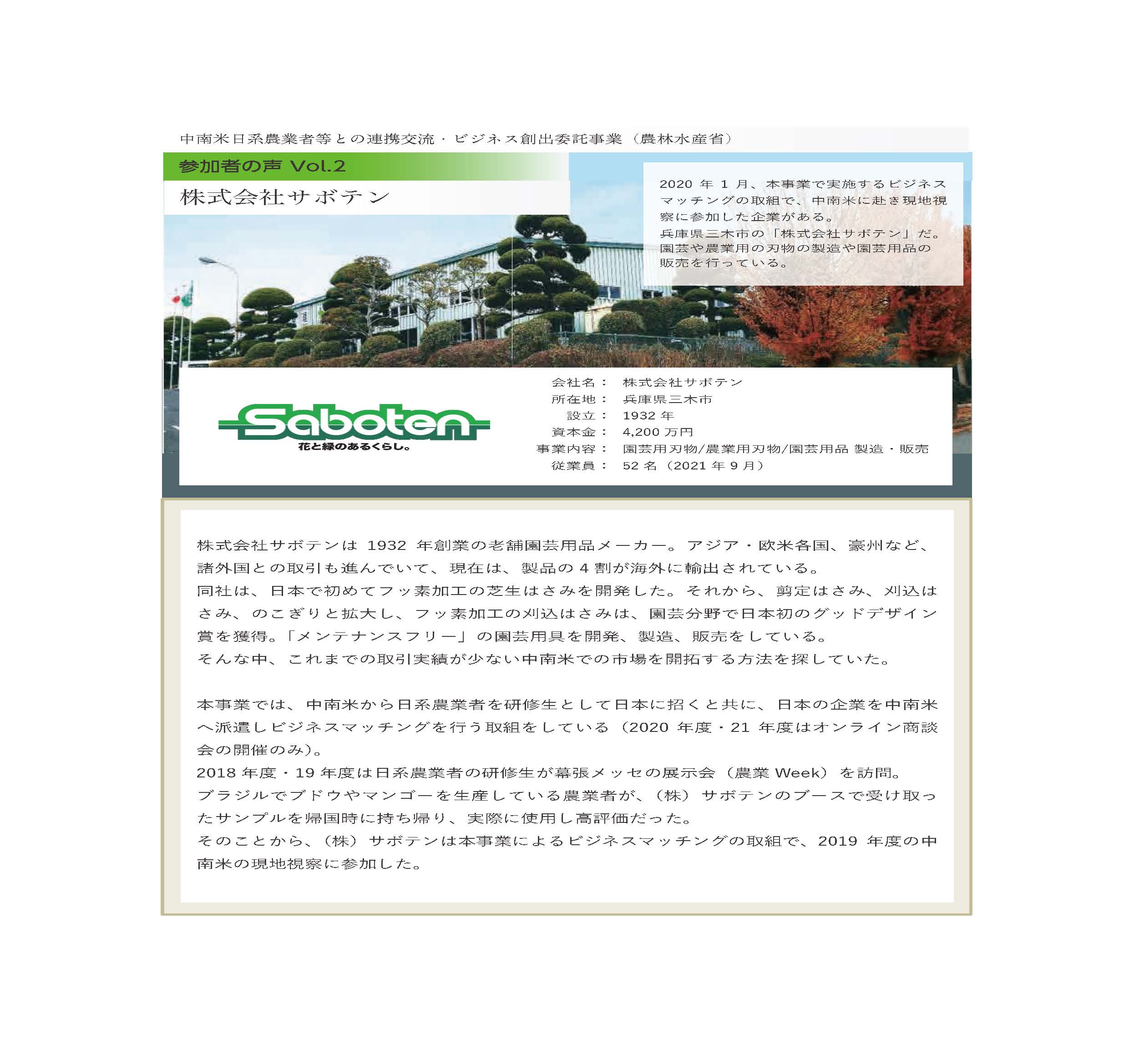 兵庫県三木市の「株式会社サボテン」だ。園芸や農業用の刃物の製造や園芸用品の販売を行っている。